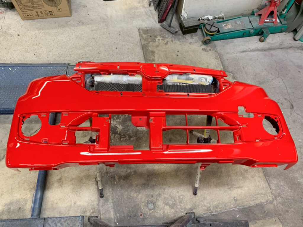 フロントバンパーを外し作業開始です。